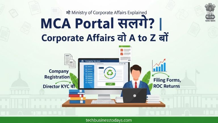 MCA पोर्टल (MCA21) मिनिस्ट्री ऑफ कॉर्पोरेट अफेयर्स का डिजिटल मंच है, जो कंपनी रजिस्ट्रेशन, अनुपालन और डेटा एक्सेस को सरल बनाता है।